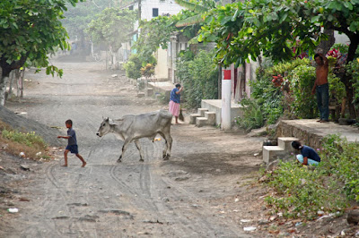 Na de wandeling worden we maar Playa Domingo gebracht voor een lunch braan het strand. Het strand is niet heel bijzonder: klein, stenen en zwart zand. Het water van het Meer van Nicaragua is wel heel lekker warm.