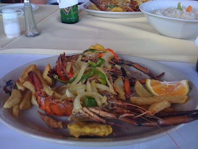 We keren terug naar El Castillo waar we lunchen. Op het menu staan de beroemde reuze garnalen. Sommige exemplaren zijn zo groot als een kreeft.