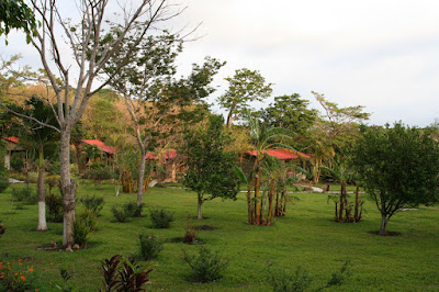 In de namiddag komen we aan de in Rincon de la Vieja Lodge. De lodge heeft een mooie groene tuin met een meertje, paarden en een canopy tour en ligt op drie kwartie lopen van de ingang van het nationale park. De kamers zijn redelijk groot, maar doen oudewets aan. Op het bed liggen twee handoeken in de vorm van een zwamen, met bloemblaadjes!
