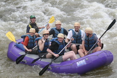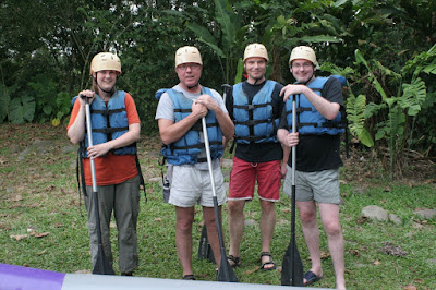 Na het ontbijt gaan we op weg naar het raften. De instructeur is een Amerikaan uit Colorado. Hij vertelt dat ze pas sinds kort weer raften op de Saraquipi. De rivier was na de aardbeving in januari volledig omgegooit, troebel en vol omgevallen bomen. Door de vele regen in februari zijn de meeste takken en bomen weggespoeld of hoger in de bedding komen te liggen. De rivier heeft vandaag een niveau 2+, dus vrij gemakkelijk te bevaren.